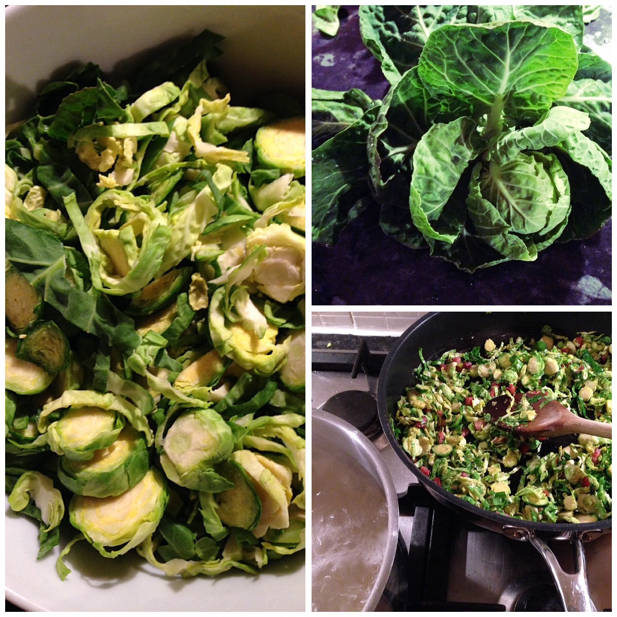 It often seems that the smaller and more strongly flavoured vegetables are more potent in plant polyphenols (cell protecting), antioxidants and minerals, chillis, garlic and sprouts all fall into this (very generalised and not scientific) categorisation. The idea of sprouts having a bad reputation is really old fashioned, sprouts, as with all vegetables, will be horrid if they are overcooked and mushy. Cook them with a bit of respect and love however, and you have a surprising and delicious note to add to your repertoire. Here I create a highly flavoured pancetta and garlic mix, to lightly cook finely shredded sprouts in. I say ‘cook’ but it’s more of a warming through and slight wilting, and retains so much of the original sprout loveliness- more vitamin C gram for gram than an orange and loads of plant based viatmin A- an anti ageing dream for those of us trying to retain our youth (in any way possible), and you might just get them past your children without them noticing!