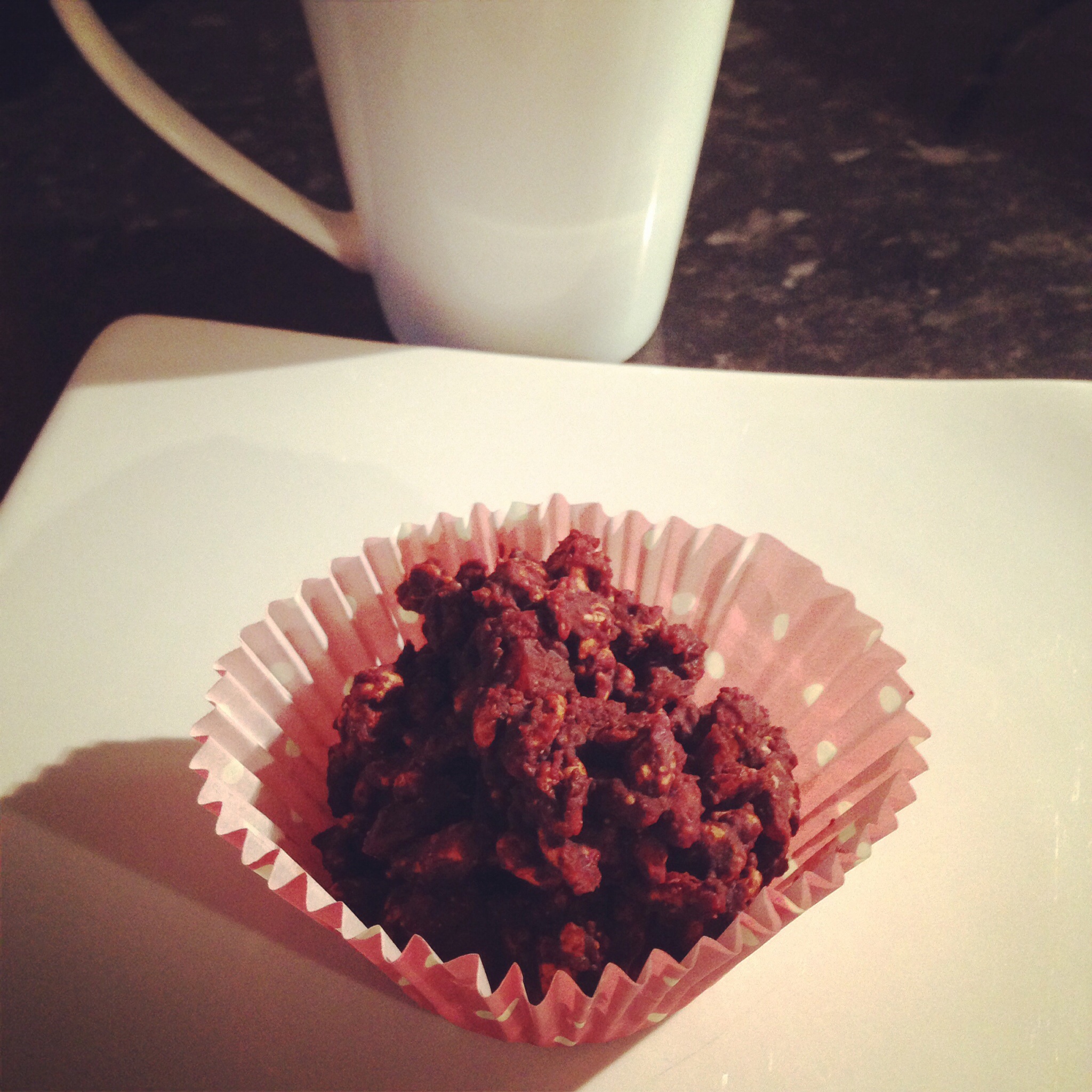 Chocolate crispy cakes were one of the first bits of ‘cooking’ that I was involved in and I still love them. I don’t however love loads of sugar, dairy or fast releasing carbs. Continuing the theme of transforming old favourites into new and healthier favourites, it’s out with cornflakes and Rice Crispies, and in with quinoa and puffed oats.